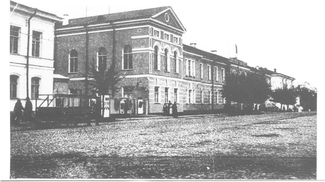 Петрозаводск застраивался по плану, утвержденному Екатериной II В 1763 году Екатерина II подписала Указ "О сделании всем городам, их строениям и улицам специальных планов по каждой губернии особо". Этим указом государство, продолжая градостроительную политику Петра I, предъявляло довольно жесткие требования к городской застройке. Здесь и внимание к противопожарной безопасности, к композиционному решению фасадов и размещению домов строго по красным линиям улиц "согласно предварительно составленному проекту" планировки. Составлением генеральных планов городов занималась Комиссия строений, состоящая из опытных архитекторов и геодезистов. В результате более чем 30-летней работы Комиссии Архангельск, Тверь, Кострома, Ярославль и сотни других губернских и уездных городов получили новые, регулярные планы. Не остался в стороне и Петрозаводск. В 1785 году Екатериной II был конфирмован "План Губернскому городу Петрозаводску", разработкой которого занимался выдающийся русский архитектор и градостроитель Иван Лем. План был напечатан в Полном Собрании Законов Российской империи, а курировал его осуществление сам генерал-губернатор Т. Тутолмин. Регулярность плана Петрозаводска сохранилась до сих пор в начертании улиц центральной части города, а также Зареки и Голиковки. На этом плане среди хаотической застройки слободы впервые были определены прямоугольные контуры второй главной площади города - будущей Соборной (ныне площадь Кирова). Новая площадь, связанная с уже сложившимся ансамблем Круглой площади центральной городской улицей - Нагорной линией (ныне проспект К. Маркса), начала застраиваться в 18-м столетии. Осуществление же ее в полной мере завершилось лишь в XIX веке - с возведением в 1872 году Святодуховского собора. Начало формированию площади положило строительство в 1788-90-м годах Главного народного училища, с 1810 года ставшего Олонецкой губернской гимназией. Композиционным центром будущего ансамбля становился собор, поэтому остальная застройка, подчеркивая его значимость, решалась достаточно нейтрально. Гимназия (ныне Музей изобразительного искусства), построенная в стиле классицизма, представляет собой двухэтажное кирпичное здание. Главный фасад, выходящий на площадь, - симметричный и предельно простой: три слабо выступающих ризалита. Центральный, более широкий, сначала был акцентирован треугольным фронтоном, а затем, в 1830-е годы, заменен ступенчатым аттиком. К главному входу тогда же было пристроено закрытое крыльцо с балконом на втором этаже, которые были утрачены в 1980-е годы. Первоначальная планировка гимназии отличалась экономичностью: принцип анфиладности помещений позволял максимально использовать площадь здания, что было характерно для "образцовых" проектов, широко применяемых в конце XVIII - начале XIX веков. Однако отсутствие коридоров превращало классы в проходные, что приводило к большим неудобствам. В конце концов, после очередного ремонта здание получило коридорную систему планировки, центральным ядром которой явилась парадная пятимаршевая лестница, располагающаяся на оси главного входа и сохранившаяся в здании музея до сих пор. В 1870-е годы к левому торцу здания были пристроены помещения для преподавателей, в 1896 году по проекту губернского архитектора М. П. Калитовича 2-й этаж пристройки был переделан под до
